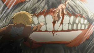 Walaupun adegan gorenya ketika Titan memakan manusia, kalian pasti merasa jijik juga kan, Dan anime ini juga termasuk anime action kelas berat.
